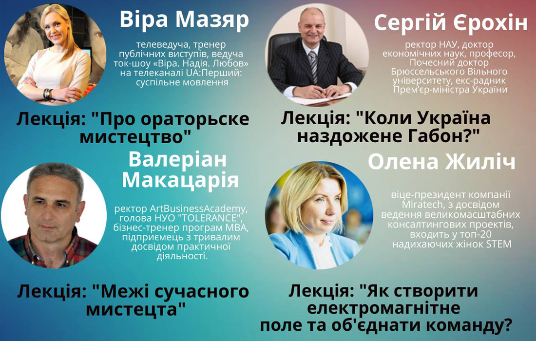 15 березня 2019 р. освітня платформа «4 People» – об’єднала 4 спікерів, які відповіли на ряд важливих для кожної свідомої особистості питань. В рамках заходу відбулися 4 науково-популярні лекції на різну тематику: економіку, мистецтво, лідерство, ІТ. Подискутували на тему соціально-економічних трендів розвитку України, чи можливо знайти межу між арт-об’єктом і чимось асоціальним, про енергетичну сумісність людей в команді, про важливі якості, які є секретами успіху оратора.
