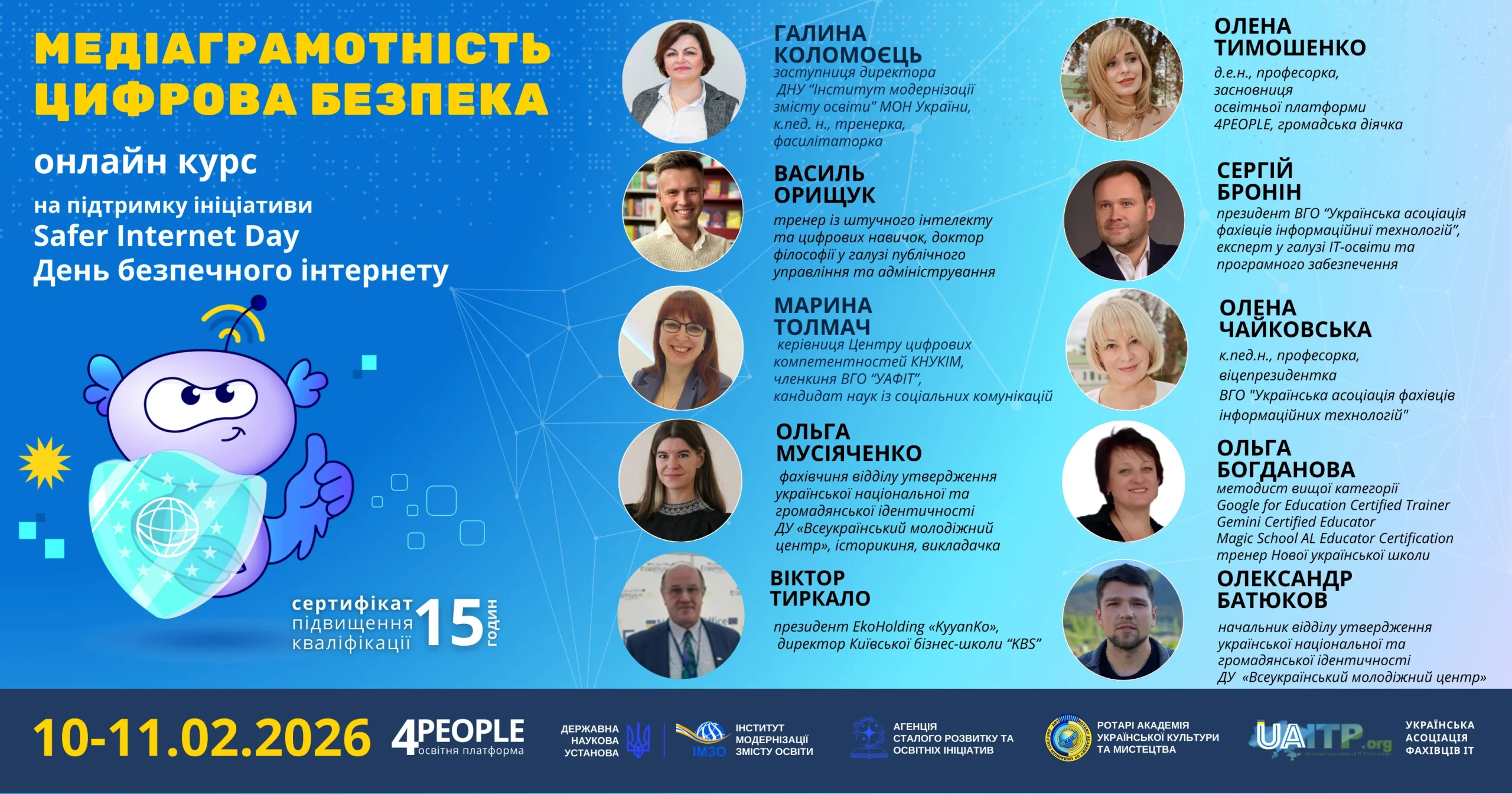 Мета курсу — сформувати у представників освітнього середовища комплексну медіаграмотність та культуру цифрової безпеки, розвинути навички критичного мислення та етичного використання цифрових технологій, виявлення онлайн-загроз, що дасть змогу ефективно захищати себе та здобувачів освіти в цифровому середовищі.